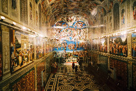 ←窓ガラスを通して建物の中を撮ったもの。反射してるのかな??って気もしますが実際は↑の写真のようにライトの光が壁画に反射してるだけです。(フラッシュたいてないしね)ガラスとレンズの間で起こった物ではないです。
